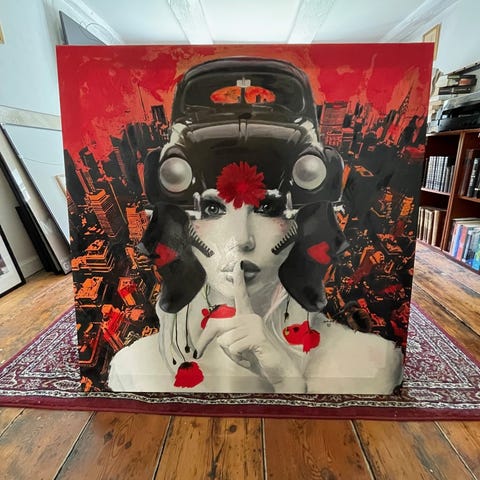 Flot og unikt billede af den kendte kunster Martin Pop i flotte farver. Akryl fernis på lærred, spændt på blændramme, Str. 70 x 50 cm, limited edition, nummereret og signeret.