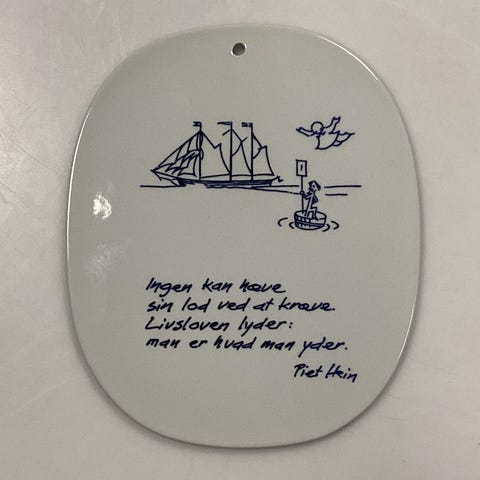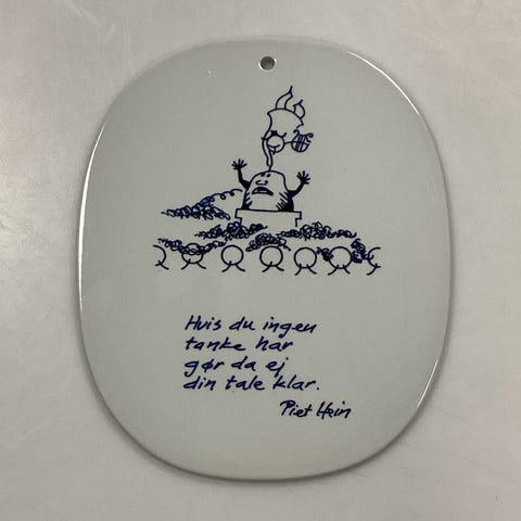 Royal Copenhagen Piet Hein Gruk Platte fra 1958 - Bekymringer trækker en negativ rente, de voxer sig sig små hvis man kan la dem vente - Piet Hein Måler 17,5 cm x 14 cm (6.89 inch. x 5.51 inch.)
