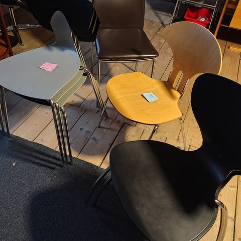 Har disse 2 stk. spisebordsstole i hvid farve.