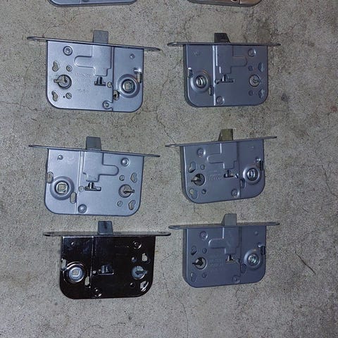 Dørlås indstukket låsekasse i stål. Låsekassen leveres med slutblik og skruer som vist på billederne. Egnet til montering i indvendige eller udvendige døre, afhængigt af dørtype og tilhørende beslag/cylinder, som ikke følger med her. Flere stk. i individuelle papæsker som på billedet.
