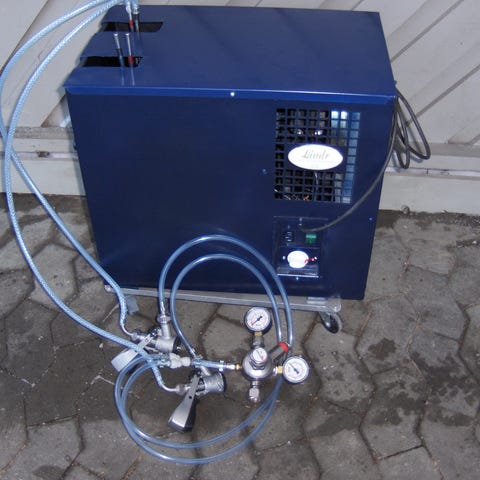 Luftkølet bordmodeller til et produkt og Vandkølede til 2 produkter hvor tappetårne er i blankt stål med 2 haner. Alt er med S koblinger, manometer og nye slanger. Alt er pænt og i orden, klar til brug. Pris på luftkølet 2250 kr. og vandkølet 3250kr. fast pris. Husk kontanter har ikke ikke mobile pay.