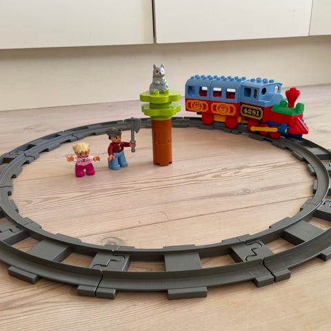 LEGO DUPLO TOGBANE MED TO TILFÆLDIG SAMLEDE TOG
