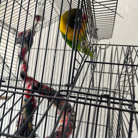 Dette vidunderlige par leder efter et nyt hjem, hvor de vil blive elsket og godt passet på, et bur og alt, hvad der følger med: et hus, to drikkeskåle, siddepinder, hoveder,med os