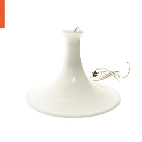 Denne lampe er en pendel med en konisk form og en rød yderside. Den har en diameter på 35 cm. Lampen leveres med ledning til tilslutning. Den indvendige side er hvid, hvilket hjælper med at sprede lyset effektivt. Lampen er ideel til moderne indretninger og kan bruges i forskellige rum som køkken eller stue. Tags: lampe, pendel, belysning, konisk, moderne.