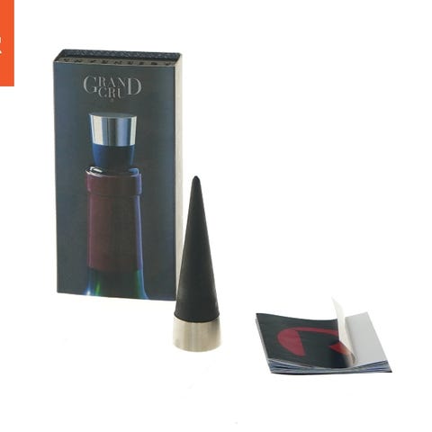 Denne Grand Cru vinkaraffelprop fra Rosendahl er designet til at bevare vinens smag ved at forhindre luft i at trænge ind i flasken. Den er lavet af sort materiale med en blank metalbase og kommer med original emballage. Størrelsen er 8,5 cm.