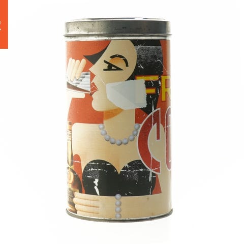 Keramisk kaffedåse med trælåg fra Knabstrup (str. Ø 12 cm, 13 cm)