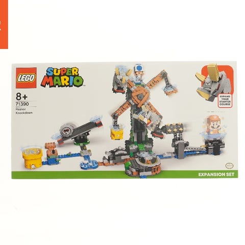LEGO Super Mario Reznor Knockdown er et udvidelsessæt, der kan bruges sammen med andre LEGO Super Mario sæt. Det inkluderer flere figurer og elementer til interaktive spil. Måler 28x7,5x54 cm, og er velegnet til børn fra 8 år og opefter. Produktnummeret er 71390.