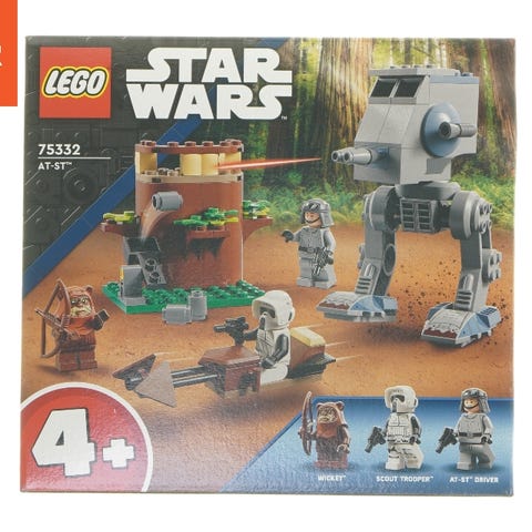 Dette er et LEGO Star Wars sæt, modelnummer 75332, som forestiller AT-ST. Sættet indeholder forskellige figurer inklusive Wicket, Scout Trooper og AT-ST Driver samt en mindre konstruktion med et AT-ST køretøj og tilbehør. Det anbefales til alderen 4 og derover.