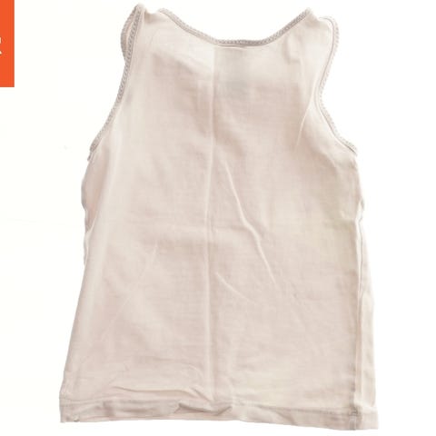 En ærmeløs tanktop i ribstrikket materiale. Den er ensfarvet blå og har en rund halsudskæring. Brandmærket er placeret indvendigt ved halsen.