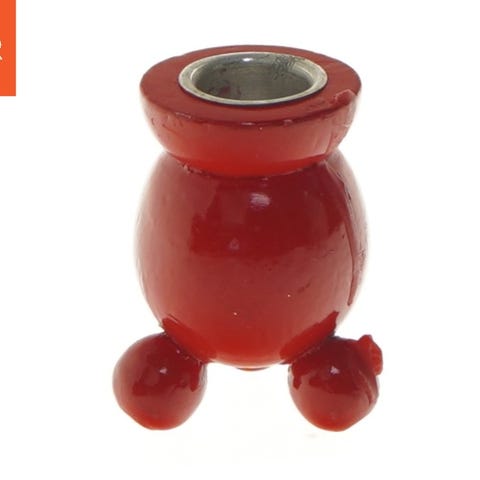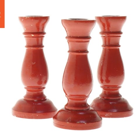 Sættet består af to små, røde lysestager i træ, hver måler 7 cm. Lysestagerne har en rund form og er malet i en klar rød farve. De har en enkel metalindsats til at holde et lys og beskytte træet ved nedbrændt lys, og er dekoreret med snor omkring toppen. Begge lysestager står på små kugleben, der giver stabil støtte.
