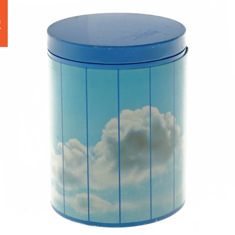 Dette er en 15 cm høj kunstnerisk dåse med en illustreret Storm P. tegning på siden. Dåsen har en grøn top med Storm P’s signatur. Undersiden af dåsen viser yderligere informationer om produktion og årstal. Den indvendige side viser tegn på slitage.