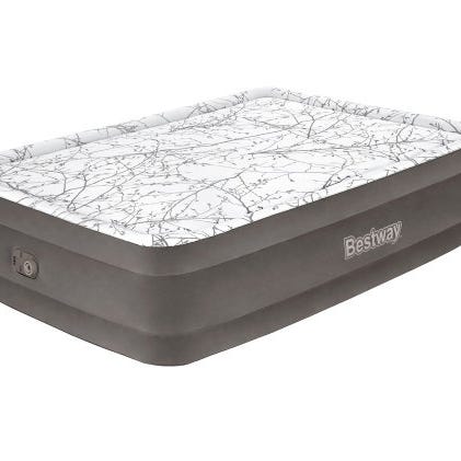 Grå oppustelig fodstøtte pude.