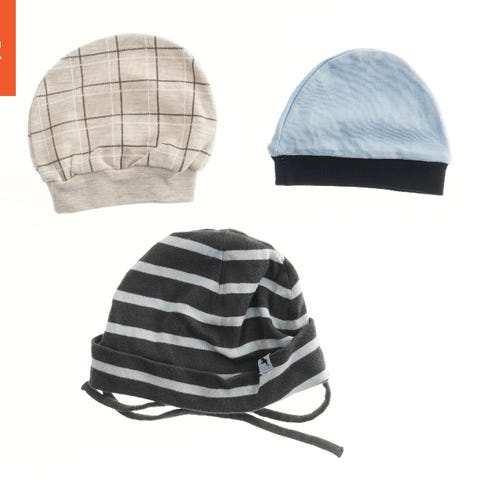 Dette sæt indeholder to små børnehuer. Den første er gul med små ører, der giver et nuttet udseende. Den har et sødt ansigt påsyet foran. Den anden hue er lys beige med et diskret mønster og en lille top. Begge huer er egnet til små børn og er lavet af blødt materiale, der er behageligt at have på.