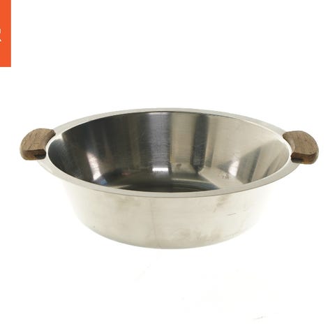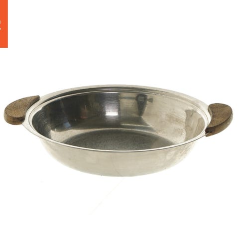 Dette er et sæt bestående af en skål og en underkop i rustfrit stål. Skålens dimensioner er 14,5 cm i diameter og 9,5 cm i højde. Designet er enkelt med en poleret overflade, hvilket giver et moderne og stilrent udseende. Velegnet til servering af snacks eller som dekoration.