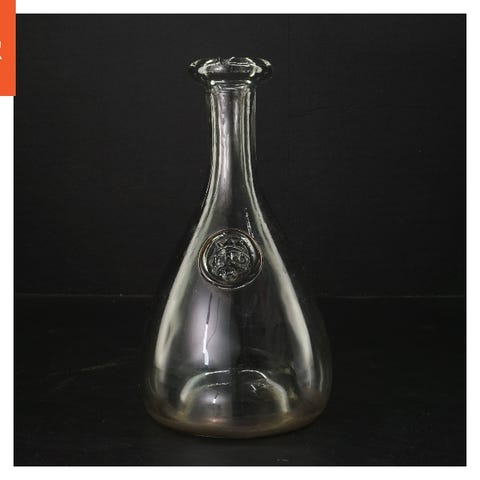 Dekorativ klukflaske / glaskaraffel med tinudsmykning (23x11 cm)