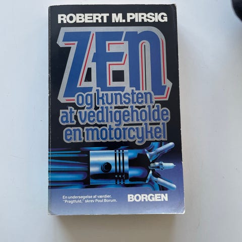Sammendrag: Zen og kunsten at vedligeholde en motorcykel handler om forfatterens flere måneder lange motorcykeltur gennem USA sammen med sin 11-årige søn Chris. Den beskriver det nordamerikanske kontinent set fra et motorcykelsæde, en oplevelse, der gjorde, at Robert M. Pirsig tog sit liv op til revision.