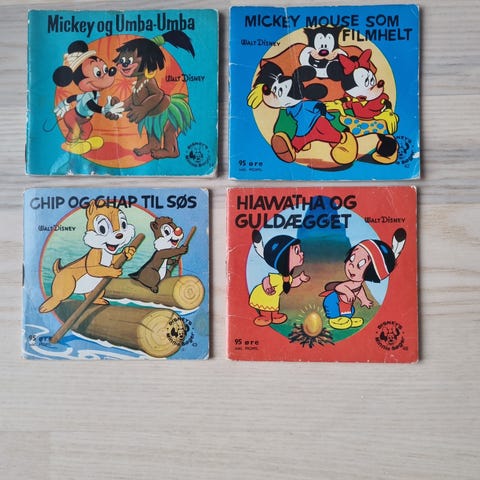 Stort illustreret bog med Disney's karakterer Minnie Mus og Mickey Mouse. For- og bagsiden viser billede af Minnie og Mickey med blomster. Bogen er en del af den store Disney samling og har scener og historier fra deres verden.