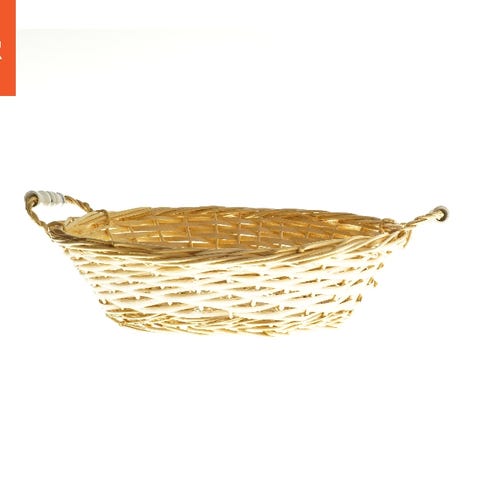 En rund flettet kurv med to håndtag. Den er lavet af naturfarvet materiale og har en åben top, ideel til brug som opbevaring. Kurven har en diameter på 44 cm og en højde på 24 cm.