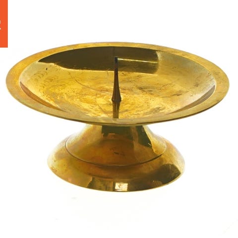 Denne messing lysestage har en dekorativ snoet design og er rund i formen med størrelsen Ø 10,5x8 cm. Den har en fast bund og åbent ramme øverst, hvilket giver mulighed for at placere lys sikkert. Dens antikke udseende kan tilføje karakter til enhver indretning.