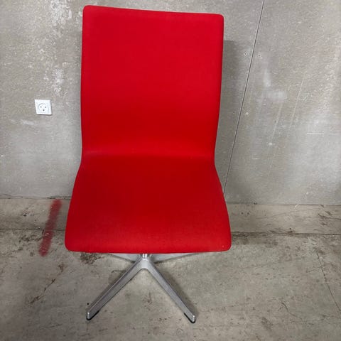 Arne Jacobsen Oxford stol med lav ryg i hvid uld på drejefod.