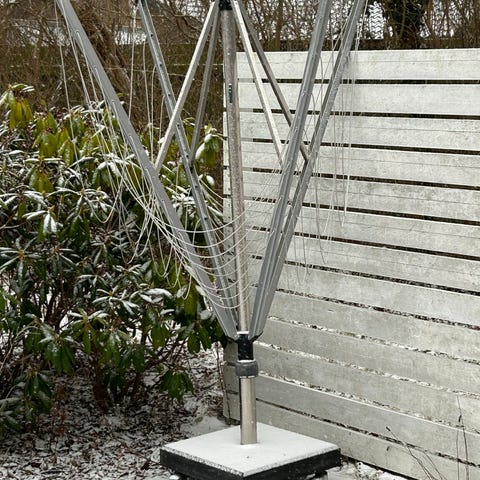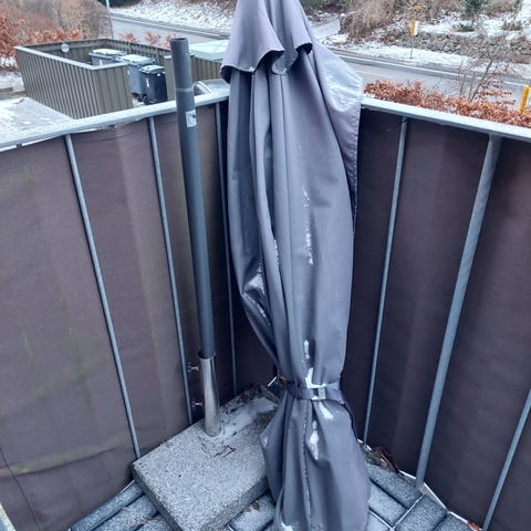 Parasol til altanen. Købt i Altanbutikken på Frederiksberg i sommeren 2025. Kun brugt få gange og har aldrig været udsat for regn. Kan tippes. Der følger overtræk med. Den befinder sig i Holbæk så derfor kan jeg ikke huske målene men tror det er 140x220cm men det kan jeg få oplyst hvis der er interesse. Nypris for det hele var over 2.500kr. Sælges da jeg er flyttet til lejlighed uden altan.