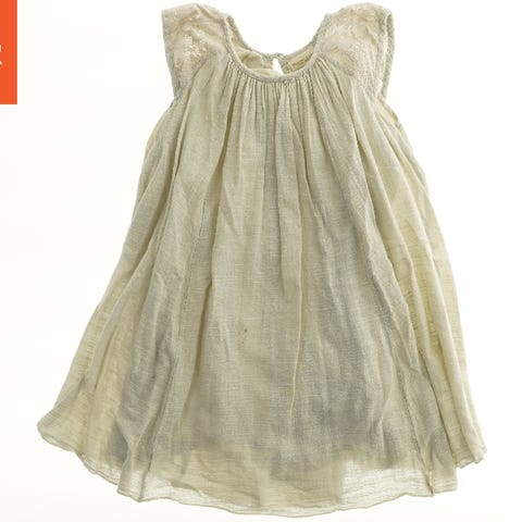 En ærmeløs kjole med flæser omkring halsen og armåbningerne. Kjolen har en løs pasform og er lavet af blødt stof.