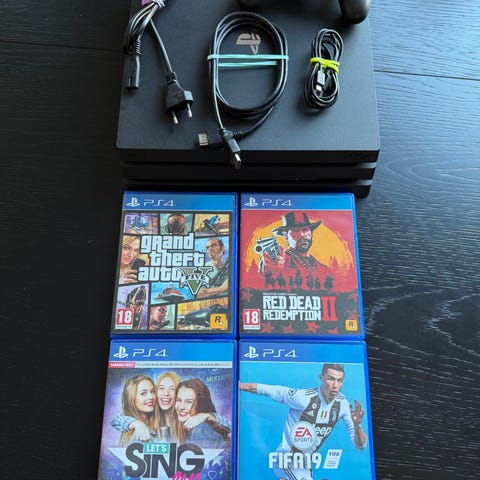 Sony Playstation 4 Pro 1tb konsol med controller og spil