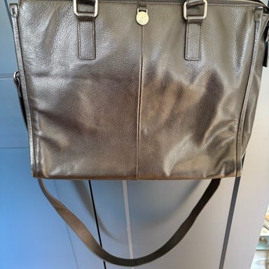 ADAX arbejdstaske i kalveskind. Den har 2 hanke (skulderrem er bortkommet).