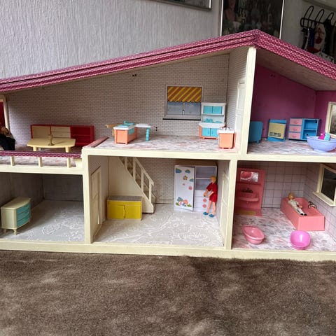 Lundby vintage fra 1980 erne dukkehus kontormøbler sæt i original æske sjældent . Sættet indeholder blandt andet skrivebord, kontostol, computer, printer, tastatur og telefon i miniaturestørrelse. Sælges pris 700 kr Jeg sender køber betaler fragt. Møblerne er beregnet til brug i Lundby dukkehuse/ Nissebo og passer til dukker i tilsvarende skala. Velegnet til indretning af et kontor- eller arbejdsrum i dukkehuset.