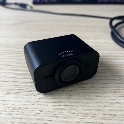 En USB-baseret webcam fra mærket Labtec. Den har en rund, sølvfarvet krop med en diameter på 7 cm. Enheden kommer med et USB-kabel til tilslutning til computer. Det er velegnet til videoopkald og online møder.