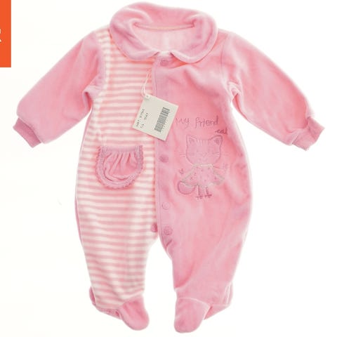 Babydragt med lange ærmer og fødder, primært hvid i farven. Dragten har et tryk af et sødt lam iført en nathue og teksten 'counting sheep one...'. Motivet er placeret på brystet. Dragten har trykknapper langs fronten hvilket gør den nem at åbne og lukke. Bagpå er der et ensfarvet design uden ekstra detaljer.