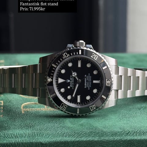 Klassisk Rolex Submariner no date i 4 liner udgaven.Uret måler 40 mm og er med automatisk optræk.Det er e V serie med ROLEXROLEX i kransen.Uret har fået komplet service ved Rolex dec 2025.