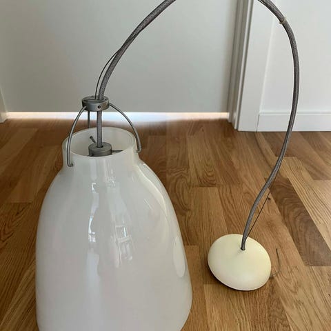 Hængelampe pendel i hvid farve. Lampen har en konisk skærm og leveres med ledning og baldakin til montering i loft. Indersiden af skærmen er hvid for at give et jævnt lys. Velegnet som belysning over bord, i køkken eller i mindre rum. Pæretype og mål er ikke oplyst.