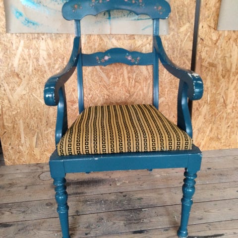Fin stol - sæde ombetrukket med babyfløjl i blå