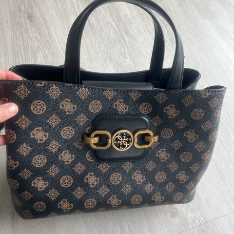 Guess skuldertaske til kvinde i kunstlæder. Tasken har klaplukning og logo-detalje på fronten. Velegnet til hverdag eller brug som mindre taske til nødvendige ejendele som pung, telefon og nøgler.