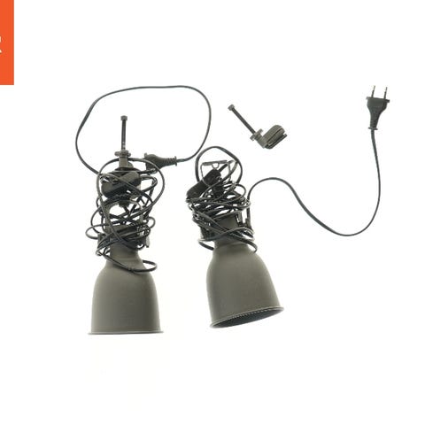 Dette er et par røde clipslamper, som kan fastgøres til forskellige overflader via et clip-system. Lampeskærmene er lavet af metal, og der medfølger lange sorte ledninger med stik. Lampeskærmene har en længde på omkring 19 cm og er designet til at give direkte, fokuseret belysning.
