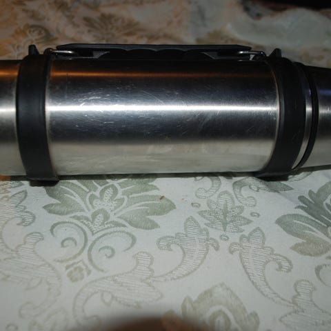 En termoflaske i rustfrit stål med en blå plastiklåg. Flasken har en cylindrisk form og er let at transportere. Den blå låg er aftagelig og har en hank til let bæreevne. Perfekt til at holde drikkevarer varmt eller koldt over længere tid. Lågets inderside er designet til at sikre en tæt lukning. Flasken har en størrelse på 20x6 cm.