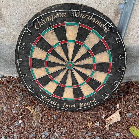 Dartskive sæt som inkluderer en dartskive med gul og sort design samt tre dartpile. Dartskiven har en diameter på 38 cm og kommer med danske regler. Skiven er delt i felter med tal fra 1 til 20 samt koncentriske cirkler på bagsiden. Perfekt til sjov og konkurrence i hjemmet eller til fritidsbrug.