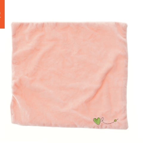 Applikationen er lavet af stof og viser et design med en baby i bagfra position, iklædt en lyserød dragt med polkaprikker og et hjerte-formet hul nedenfor. Den måler 20x13 cm. Detaljerne er broderet med en lys pink kant, og stoffet er primært råhvidt med lyserøde elementer. Denne type applikation bruges oftest til dekoration på tøj, tasker, eller husholdningstekstiler.