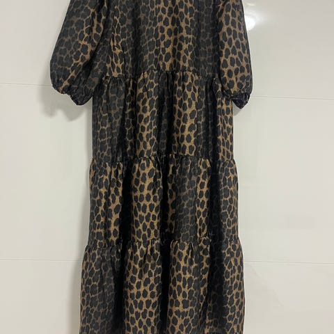 Cras fest/cocktailkjole i str. 38. Kjolen er fremstillet i polyester og har et multifarvet mønster i pink og orange. Modellen har lange ærmer, stor krave med flæsekant og dekorativ knaplukning foran. Skåret i flere lag for et voluminøst udtryk. Velegnet som fest- eller cocktailkjole til kvinder.