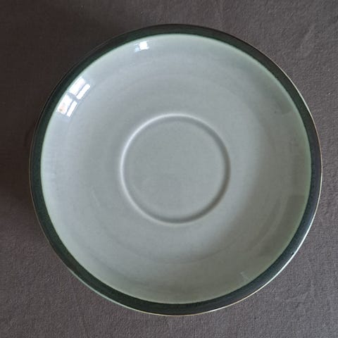 Sæt af fem kaffekopper med underkopper. Kopperne er lavet af stentøj og har et minimalistisk design med glat overflade. De kommer i en neutral grå farve med en mørkere bundfarve, hvilket giver dem et moderne og stilrent udseende. Bruges til servering af varme drikke som kaffe eller te.