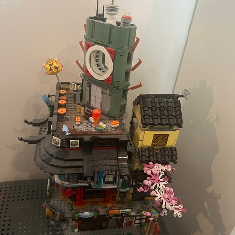 Lego Ninjago City Markets (71799) sælges. Har været samlet én gang og stået til pynt siden. Et af de 10 største lego byg og kan sættes sammen med andre Ninjago byg.