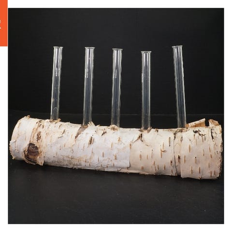 Glasrørene er jævnt fordelt langs træet, hvilket fremhæver birkens naturlige tekstur og giver et elegant udseende. Perfekt til at tilføje en naturlig accent til ethvert rum.