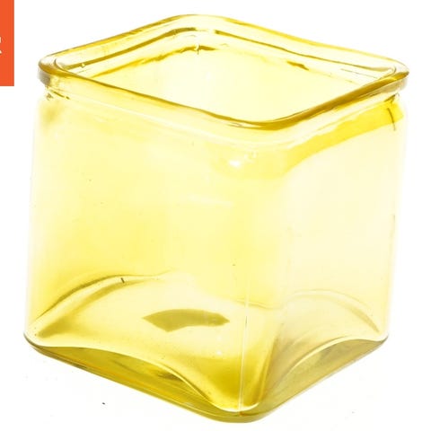 Kvadratisk glasvase i gul farve med dimensionerne 12x12x12 cm. Vasens enkle design gør den velegnet til dekoration og brug i hjemmet. Den har en solid base og kan bruges til at holde blomster eller som en dekorativ genstand. Der er en prismærkat på bunden.