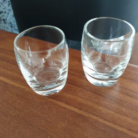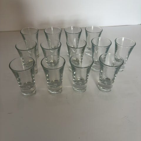 Seks Thule snapseglas med en diameter på 3,5 cm og en længde på 8 cm. Glassets form viser en bredere top med en smal fod, som gør dem velegnede til servering af små drinks eller shots.