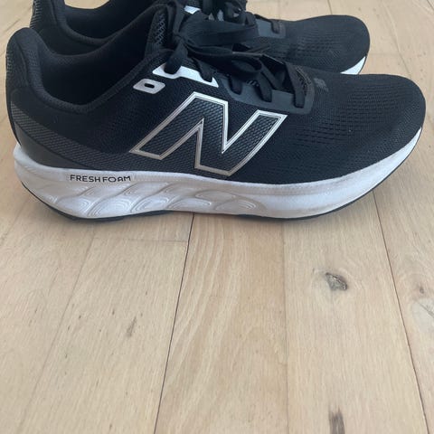New Balance løbesko i størrelse 46. Skoene er i grå og hvid med sorte og sølvfarvede detaljer. Overdelen er i mesh og syntetisk materiale, som giver åndbarhed og støtte. Mellemsålen er polstret for komfort ved gang og løb, og ydersålen har mønster for bedre greb. Velegnet som løbesko eller til hverdagsbrug som sportssko/sneakers.