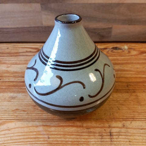 Den har 2 små afslag af glasuren i topkanten og lettere alderspatina i form af diskrete krakeleringer - ellers i rigtig fin stand.