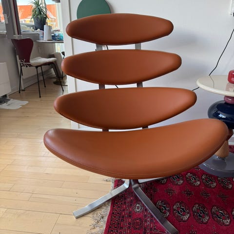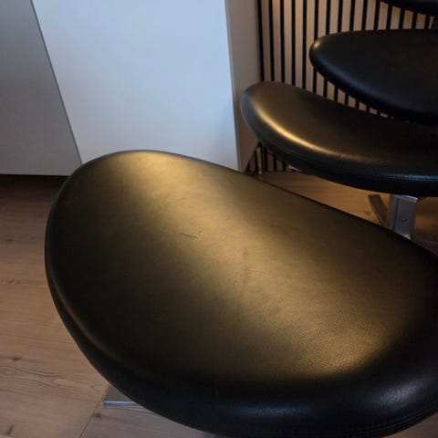 Fin og original skammel fra 2017 - billede af et lille hak i læderet er vedhæftet. Ses ikke i helheden. Stadig en utrolig flot skammel som fulender din stol.