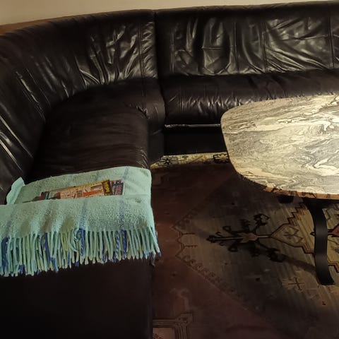 Der er tydelige brugsspor i læderet (se billeder), men sofaen er stadig meget funktionel og har masser af liv tilbage. Pudernes ryg kan justeres for ekstra komfort.