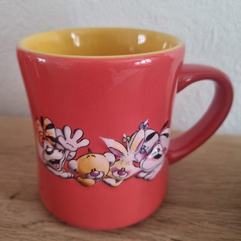 DIDDL krus med bogstaverne A , E og K. Højde 8,5 cm.